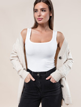 Элегантный топ натурального белого цвета с регулируемыми лямками выполнен из сатиновой ткани премиального качества, сочетающей полиэстер и эластан в составе. Этот уникальный дуэт материалов обеспечивает комфортную посадку топа. Универсальный крой делает топ идеальным базовым элементом как для повседневных образов с джинсами или юбкой, так и для вечерних луков под жакет или кардиган.