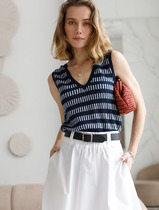 Топ из тонкого жаккарда выполнен из вискозы. Вертикальный вывязанный принт визуально стройнит и вытягивает силуэт. Добавление в состав ПЭ способствует легкости и износостойкости изделия. Мягкая пряжа приятно ощущается на теле и дарит настоящий комфорт в теплое время года. Можно стилизовать изделие в многослойных образах как жилет.
