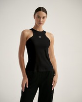 Топ выполнен из трикотажа в широкий рубчик. Премиальное качество хлопковых волокон и наличие эластана в составе изделия, обеспечивают абсолютный комфорт, не сковывая движений. Изделие обладает хорошей формоустойчивостью и надолго сохранит свой безупречный внешний вид. Металлический логотип бренда.