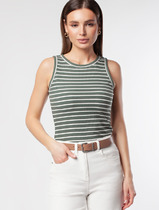 Vilatte Топ из трикотажа в широкий рубчик D43.223 оливка с белым