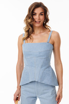 Трендовый матовый металлизированный эффект создает сияющий блеск без излишней яркости — это делает топ нарядным  и красивым как для праздничного события, так и для повседневной носки в комплекте с   деловым костюмом или джинсами.  Широкие лямки обеспечивают дополнительный комфорт в течение всего дня.  Круглый ворот подчеркивает линию шеи, добавляя образу изысканности.