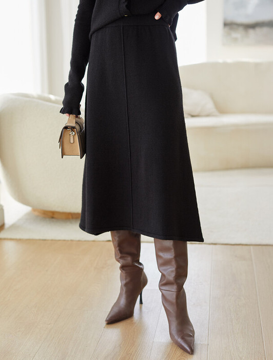 Vilatte Юбка А-силуэта из пряжи с кашемиром D36.016 черный
