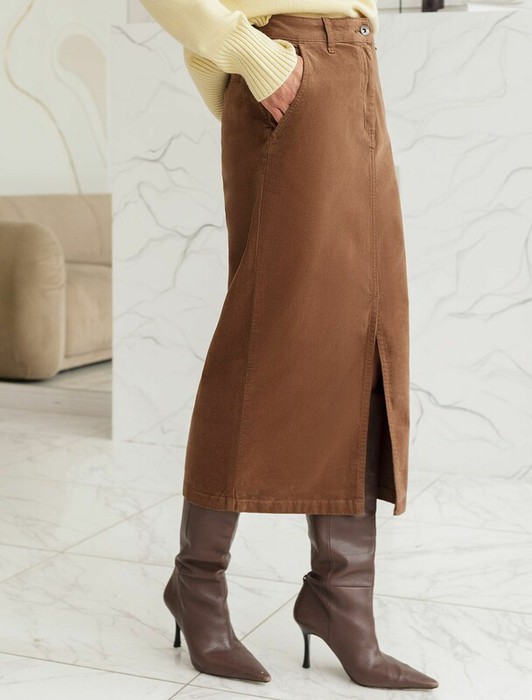 — Vilatte Юбка из эластичного микро-вельвета D26.189 светло-кофейный