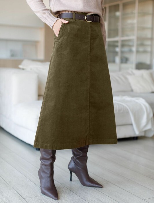 Совместные покупки Нижний Тагил Женская одежда Юбки — Vilatte Юбка из эластичного микро-вельвета D26.200 хаки