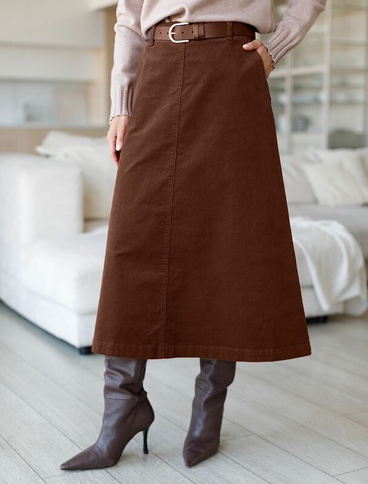 — Vilatte Юбка из эластичного микро-вельвета D26.200 светло-коричневый