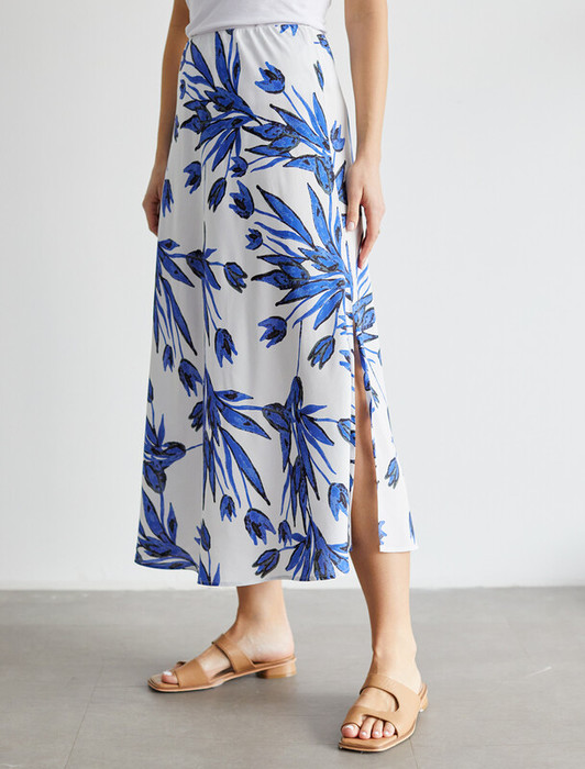 Юбка выполнена из вискозы с лиоцеллом. Модель А-силуэта кроенная по косой. Ткань изящно блестит и приятно охлаждает кожу в жаркое время года. Модель сечетается в костюме с топом D23.062 и блузкой D29.263