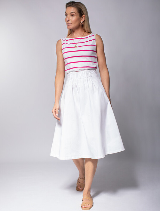 Юбка выполнена из плотного поплина. Удобный пояс на широкой резинке подчеркивает талию при этом не сковывая движений. Модель дополнена удобными карманами по бокам. Материал изделия прочный и износостойкий, но при этом мягкий и удобный, отлично держит форму и подходит для повседневной носки, гарантируя абсолютный комфорт даже в жаркое время года. Без подкладки
