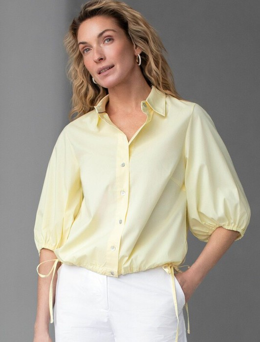27.03 Vilatte Укороченная блузка с рукавами буфами и с кулиской по низу из элас