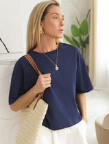 Совместные покупки Нижний Тагил Женская одежда Футболки — Vilatte Укороченная футболка силуэта овер-сайз D49.090 т.синий