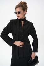 Жакет выполнен из футера двухнитки с эластаном. Модель без карманов с воротом стойка и застежкой на молнию серебристого цвета. Эластичный материал гарантирует комфорт и формоустойчивость. Сочетается в костюме с брюками D44.138, D44.139 и шортами D48.008. Изделие дополнено металлическим логотипом бренда.