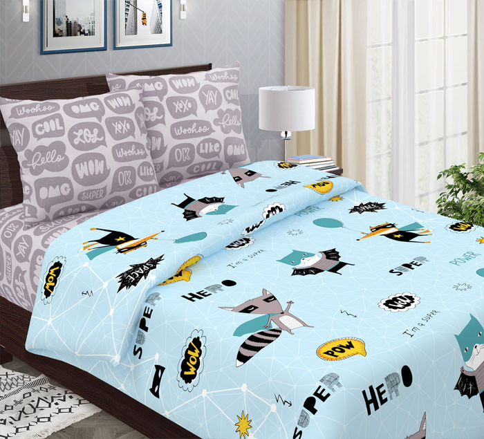 Совместные покупки Нижний Тагил Товары для дома и дачи Постельное белье — ВЛАДЛЕН Детское постельное белье из бязи 1,5сп с 1 наволочкой Супергерои(голубой