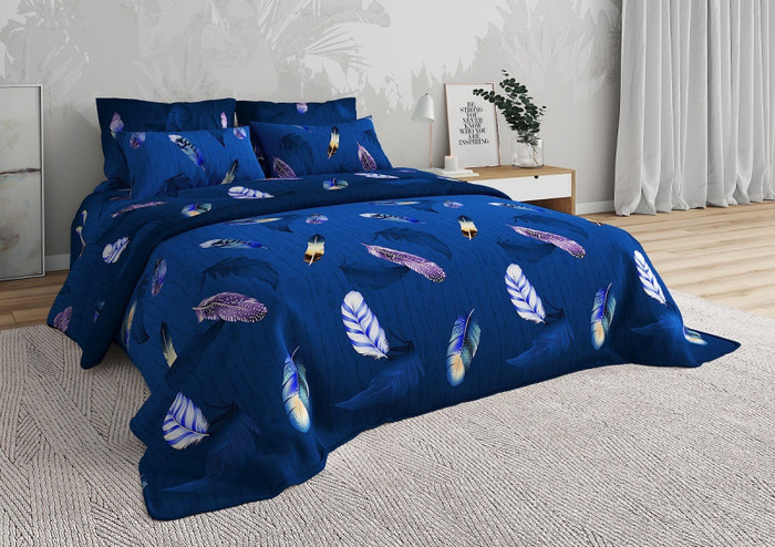 ВЛАДЛЕН Постельное белье из бязи премиум Перья (синие)