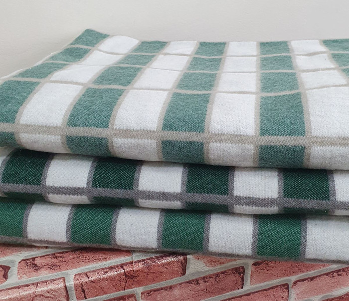 ВЛАДЛЕН Одеяло байковое 80% хлопок - Бело-бежево-тёмно-зелёная клетка