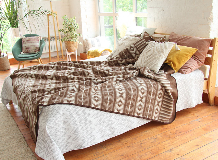Красивое одеяло с рисунком натуральное полушерстяное в канте всесезонное.