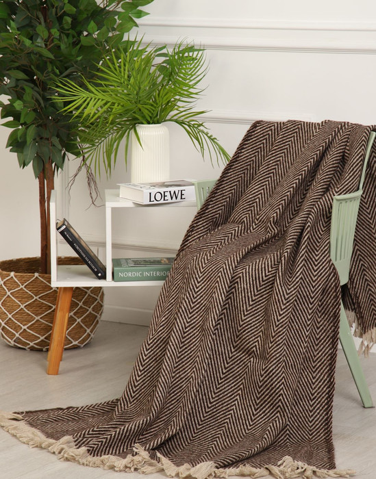 ВЛАДЛЕН Плед полушерстяной (50% шерсть) - Геометрия шоколад