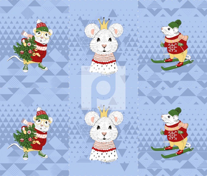 ВЛАДЛЕН Набор вафельных полотенец для кухни Мышиный король Голубой