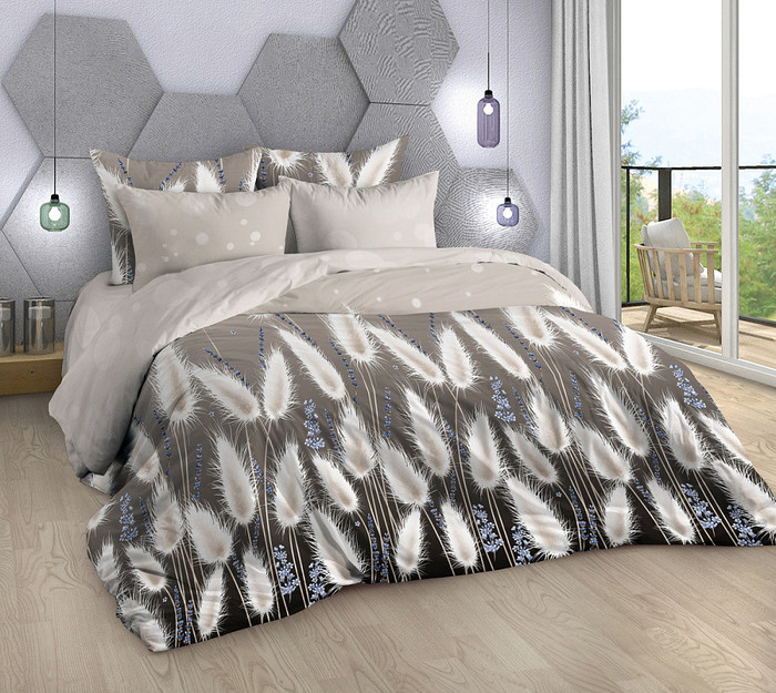 Данное постельное белье изготовлено из двух видов ткани( основной-пододеяльник ; компаньона-простыня и наволочки).