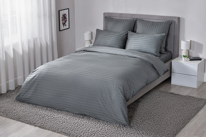 ВЛАДЛЕН Постельное белье из Страйп-сатина - Серый