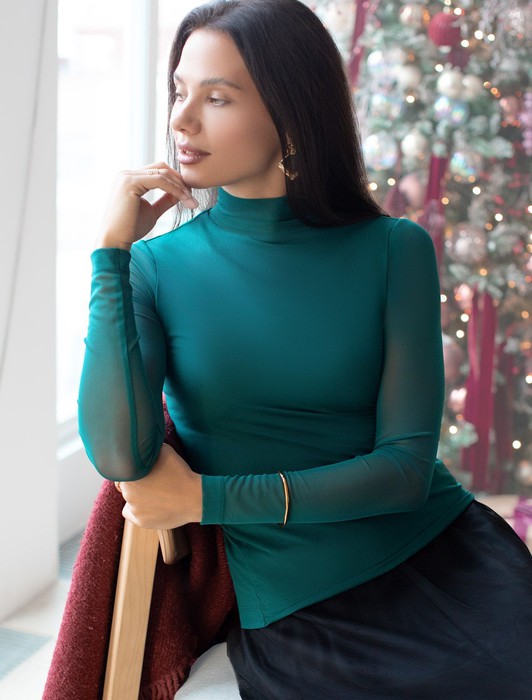 Состав: 95%ПЭ 5%ПУ; ПОДКЛАДКА- 95%Вис 5%ПУ Плотность: 90 Г/м2Элегантная модель из мягкой вискозы с эффектными деталями! Основная часть водолазки изумрудного цвета выполнена из плотного вискозного трикотажа, обеспечивающего комфорт, в то время как рукава из тонкой сетки создают стильный контраст. Двойной воротник с отворотом добавляет образу многослойность и универсальность. Модель отличается безупречной посадкой по фигуре!