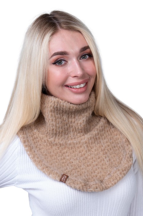 ВОРОТНИК-МАНИШКАВоротник-манишка из натуральной верблюжьей шерсти – самый лучший способ защиты области шеи, горла, верхнего отдела позвоночника.Манишка выполнена из уникального материала – вязанный шерстяной мех на трикотажной, БУКЛЕ. Высота ворса 5-7 мм, высокая эластичность и мягкость материала. Она мягко облегает шею, способствует глубокому прогреванию, сохранению тепла. Благодаря широкой площади охватывает также грудную область и верхнюю часть спины. -оказывает массажный эффект, улучшает микроциркуляции крови в области позвонков. - профилактика простуды и воспаления горла, при ангине - профилактика остеохондроза шейных позвонков - защита горла и груди при работах на холоде, при влажности и сквознякахМанишка универсальна для взрослых и детей
