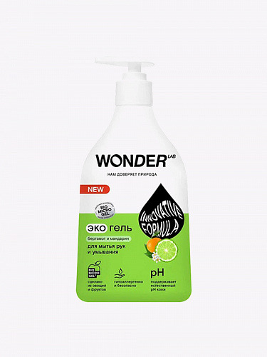 Жидкое мыло и другие экосредства WONDER LAB созданы на основе инновационного компонента Biomicrogel®, сделанного из овощей и фруктов. Средства WONDER LAB не вредят окружающей среде, не содержат опасных компонентов и разлагаются на 98% за 1 день.