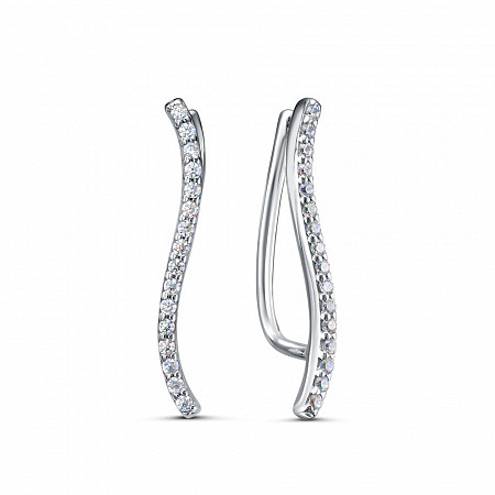 Серьги женские из серебра с фианитами родированные С-7608р200