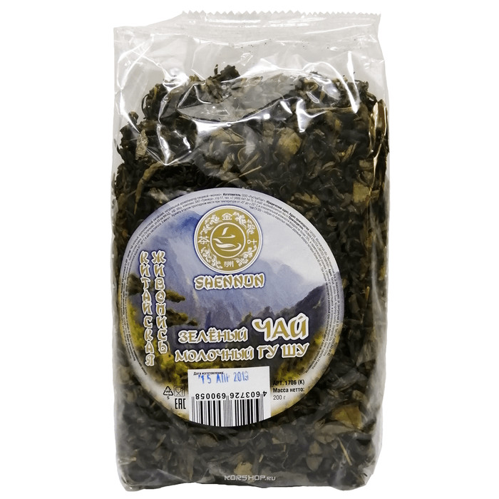 Зеленый чай Молочный Гу Шу от торговой марки Shennun – это уникальный напиток, для производства которых собирают листья со старейших чайных деревьев на высокогорных плантациях. Вкус настоя получается нежным и ярким с долгим послевкусием. Он не только бодрит, но и укрепляет иммунитет, а также отлично очищает организм от шлаков. Купить зеленый чай Молочный Гу Шу Shennun с доставкой на дом по Москве и Подмосковью можно в интернет-магазине KorShop.ru.