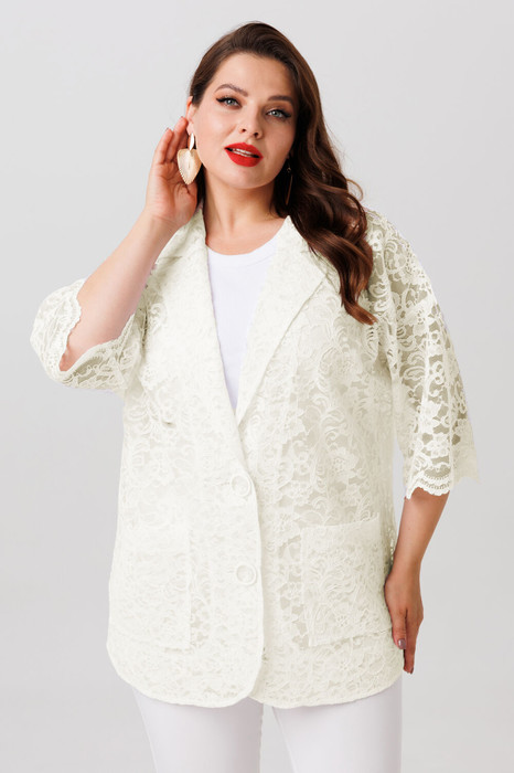 Бренд белорусской женской одежды больших размеров Anastasia представляет элегантный кружевной жакет. Жакет прямого силуэта со спущенным плечом. Рукав 3/4 длины. Застежка на пели и пуговицы, воротник пиджачного типа. По полочке идут накладные карманы, низ фигурный. Стильный жакет оверсайз невероятно удобный и практичный. Отличный вариант в офис, в школу, на работу, на каждый день. Жакет выгодно подчеркнет достоинства фигуры и скроет недостатки, подходит для девушек любых размеров одежды. Комфортный удобный, хорошая посадка и современный дизайн. Длина по спинке: (52-60) - 77 см, (62-68) - 79 см. Длина рукава: (52-68) - 30 см