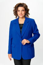 Полочка жакета с двубортной застежкой на петли и пуговицы, вертикальными рельефами и прорезным карманом с клапаном. Горловина V-образной формы, с отложными лацканами и воротником пиджачного типа. Спинка со средним швом и вертикальными рельефами. Рукав длинный, двухшовный, втачной.