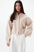 Стильный жакет кроя выполнен из полотна с контрастным принтом. Характеристики: укороченный жакет, подкладка, воротник стойка, застежка центральная - металлизированная молния, рукав свободного кроя спущен, низ рукава заканчивается резинкой, спинка цельнокроеная, низ изделия на резинке. Длина по спинке 50 см, длина рукава от края горловины 81 см.