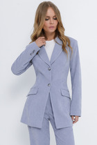 Стильный жакет прямого кроя выполнен из костюмной ткани цвета шоколад. Характеристики: прямой крой, подкладка, подплечники, отложной воротник с лацканом, застежка центральная на петли пуговицы, по переду имитация карманов с клапанами, по линии талии пояс завязывающийся по спинке. Длина по спинке 74 см, длина рукава 64 см