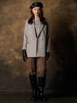 Жакет прямого свободного кроя. Выполнен из костюмной ткани синего цвета с полоской голубого цвета. С подкладкой. Воротник отложной, с лацканами. Рукав втачной, немного спущен. Есть подплечники. По переду карманы с клапаном (функциональные). В среднем шве заднего полотна высокая шлица (48 см). Застёжка центральная пуговицы. Длина спинки 76 см. Длина рукава от линии втачиваня 61 см. В комплекте пояс из основной ткани