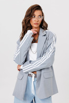 Жакет однобортный прямого свободного кроя, выполнен из текстильного полотна черного цвета. Характеристики: брендированная подкладка, подплечники, воротник с остроугольным лацканом, застежка центральная на петли пуговицы, по переду карманы с клапаном, рукав втачной, спинка со средним швом, по низу изделия лацкан 29см, в комплекте пояс из ткани основного изделия. Длина жакета по спинке 78 см, длина рукав 64см.