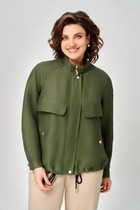 Жакет женский удлиненный, из экокожи, на подкладке, полуприлегающего силуэта с центральной бортовой застежкой на пуговицы до линии перегиба лацкана. Спереди рельефные швы от плечевого шва, отрезной бочок и карман с клапаном. Спинка с рельефами от плечевого шва. Рукав втачной, двухшовный. Воротник пиджачного типа. Длина по спинке 66 см, длина рукава 62 см.