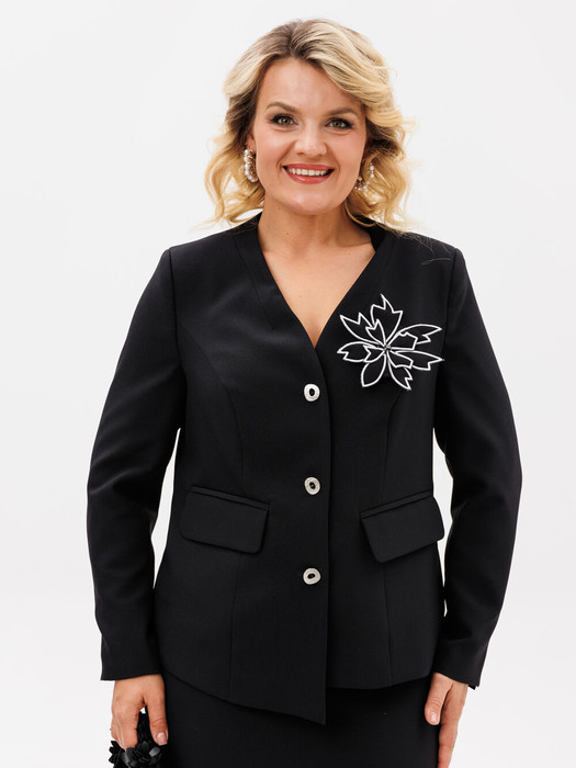 В комплект к жакету входит дизайнерская брошь -декоративный цветок, которую при желании можно снять. Жакет на подкладке.
