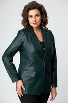 Джемпер женский выполнен из трикотажной ткани. Имеет прямой силуэт жакетного типа. Горловина округлой формы. Планки переда и горловины, а также клапаны, имитирующие карманы, выполнены из контрастного цвета. Рукав втачной одношовный. По переду имеются нагрудные вытачки. Застежка на пробивные петли и пришивные декоративные пуговицы.