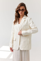 Жакет идеально подходит для офиса, встреч и городских прогулок, легко комбинируется как с базовыми вещами, так и с яркими акцентами.
