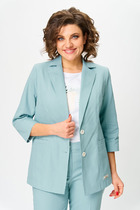 Жакет прямого свободного силуэта из костюмной ткани. Воротник пиджачного типа, застежка обнобортная на 4 петли и пуговицы. Перед с талиевой вытачкой и карманом с клапаном в рамку, с рельефом. Спинка со средним швом и рельефами, в рельефах шлица. Рукав втачной одношовный со шлицей и 4-мя пуговицами. Жакет на подкладке. Длина жакета- 70 см, длина рукава жакета - 60 м.