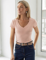 Vilatte Футболка из плотного трикотажа с плетением риб 1*1 D49.126 пудра
