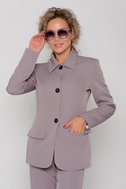 Однобортный жакет на подкладке прямого силуэта с застёжкой на две петли и пуговицы. По талии расположена кулиса и шнурок для приталивания жакета. По переду расположены накладные карманы с клапаном и декором. Длина жакета 68-72 см.