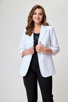 Жакет свободного прямого силуэта длиной ниже линии бедер из костюмной ткани. Изделие со съемным поясом, на подкладке и накладными карманами. Рукав втачной, двухшовный, пройма спущена. Воротник английский. Застежка не предусмотрена.