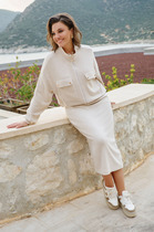Длина жакета по спинке около 69 см в размерах 40-46 и около 72 см в размерах 48-52, длина рукавов около 62 см.