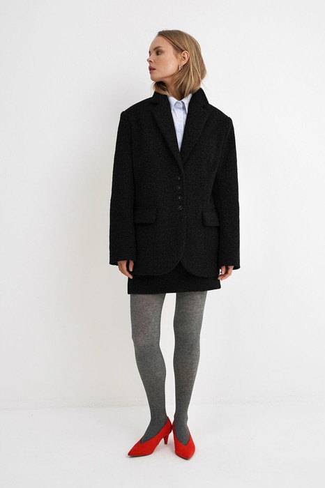 Состав: Жакет- Вискоза-12%; Шерсть-30%; ПАН-58%; Подкладка- Вискоза-55%; ПЭ-45%;