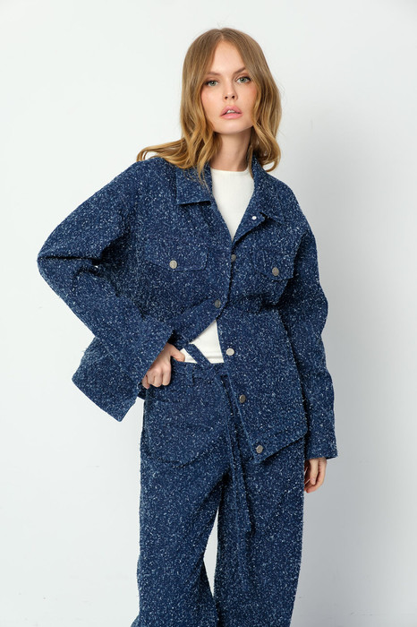 Свободная куртка из хлопкового джинса с перфорацией.