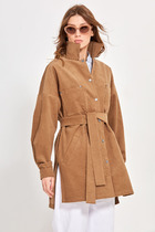 Модель полуприлегающего силуэта, с рельефами, на подкладе. Застёжка двубортная на петли и пуговицы. Спереди прорезные карманы в рамку, а также имитация кармана и декоративные пуговицы. Спинка со средним швом. Воротник пиджачный. По низу рукава обработана шлица с отделочными петлями и пуговицами.