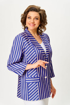 Жакет полуприлегающего  силуэта, выполнен из структурной ткани. Округлый вырез горловины. Застежка центральная на петли и пуговицы. Спереди обработаны декоративные клапаны с пуговицами. Рукава втачные двухшовные. Спинка со средним швом и рельефами. Жакет на подкладке.