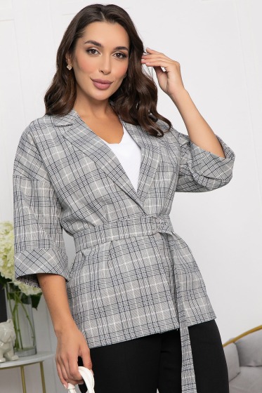Элегантный жакет из костюмной ткани в клетку — идеальное дополнение как для дневного, так и для вечернего образа. Эта стильная модель выполнена в свободном силуэте с английским воротником, который визуально удлиняет шею, придавая образу утончённость. В комплект входит пояс из основной ткани, что позволяет подчеркнуть талию и добавить изысканности вашему наряду. Подходит для офисных встреч, прогулок и вечерних мероприятий.