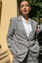 Комфортный летний жакет приталенного силуэта выполнен из легкой костюмной ткани. Цельнокроенный короткий рукав. Английский отложной воротник. Двубортная застежка на петли и пуговицы. По линии талии застрочены складки. Низ ровный без рзрезов.