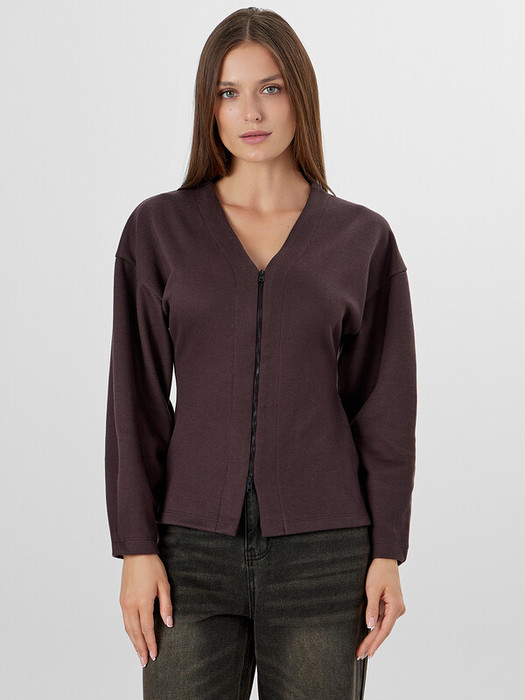 Центральная застежка на молнию делает жакет удобным в ежедневном использовании и универсальным для разных образов.