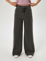Женские модные джинсы с пятью карманами. Посадка Baggy fit , высокая талия спереди и сзади, широкие штанины по всей длине. для лучшего облегания в области бедер под передними карманами сделана вытачка. Застежка на молнии. Выполнены из эластичной ткани denim stretch, цвет ткани Blue/Black(лицевая сторона ткани темно-синяя, изнаночная сторона-черная). Классическая темная стирка с потёртостями только по швам.